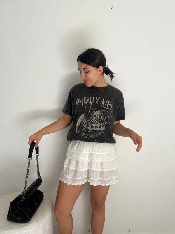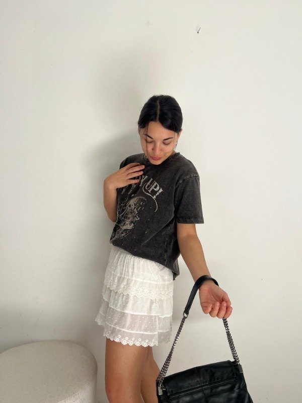 Falda con elástico en la cintura. Corta estilo romántica.